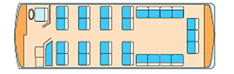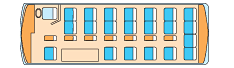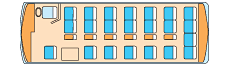 オプションテレビ、ビデオ、冷蔵庫、カラオケ、湯沸しポット、リクライニングシート、トランクルーム、サロン ※サロン部分は通常使用の場合、前向き普通席になります